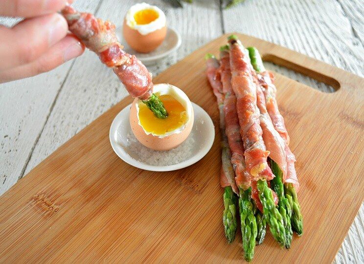 Typically enjoyed with toast, this recipe gives you the great flavor of soft boiled eggs, combined with the saltiness of those prosciutto-wrapped asparaguses we all love.